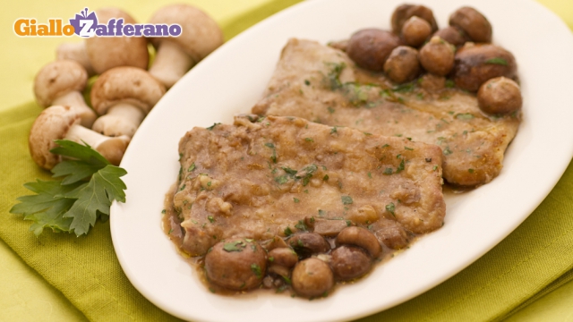 In un'altra padella aggiungete il restante burro, fatelo fondere assieme ad uno spicchio di aglio schiacciato, quindi aggiungete i funghi e cuoceteli a fuoco allegro finchè cominceranno a sudare la propria acqua. A questo punto salate, pepate e fate cuocere per un totale di 10 minuti, dopodiché aggiungete le fettine e lasciate cuocere per un altro minuto: aggiustate eventualmente di sale, aggiungete il prezzemolo tritato e spegnete il fuoco. Se vi sembra che le vostre scaloppine ai funghi siano troppo asciutte, prima di unire la carne versate nei funghi 100 ml di acqua nella quale avrete sciolto 1 cucchiaio di farina (fate attenzione che non ci siano grumi); fate addensare per qualche minuto, ottenendo così un sughetto denso e cremoso che renderà meno asciutta la preparazione e amalgamerà meglio gli ingredienti. Servite immediatamente disponendo due fettine di carne a testa accompagnate dai funghi che suddividerete per ogni commensale.