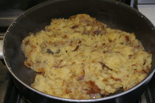 Quando sono cotte sbucciarle e schiacciarle con una forchetta, metterle in padella con un bel pò d'olio e aggiungerci tanto formaggio. Continuare a girarle ( si forma la crosta) fin quando non si è soddisfatti del risultato!