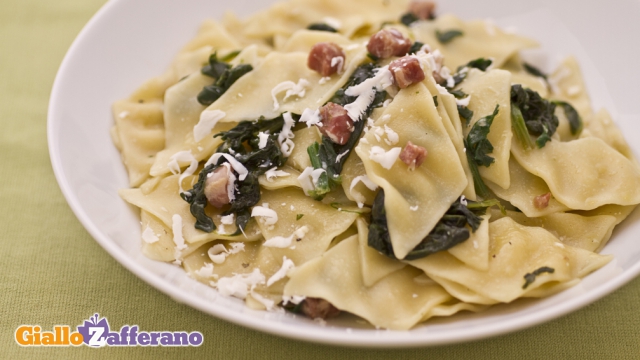 Per preparare i maltagliati con spinaci e ricotta salata iniziate versando l’olio in padella, aggiungete lo scalogno tritato e fatelo appassire a fuoco basso; poi aggiungete la pancetta e lasciatela dorare a fuoco dolce. Incorporate gli spinaci mondati e coprite con un coperchio in modo che si cuociano rapidamente; quando saranno cotti salateli.