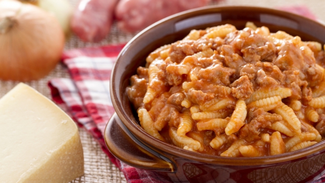 Per preparare i malloreddus alla campidanese sbucciate e tritate finemente mezza cipolla e fatela appassire lentamente in una padella antiaderente con olio di oliva extravergine. Spellate la salsiccia, sbriciolatela grossolanamente con le mani e unitela al soffritto di cipolla.