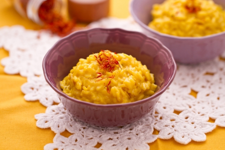 Negli ultimi 5 minuti di cottura, sciogliete lo zafferano in poco brodo e versatelo nel riso facendolo amalgamare bene. Una volta che il riso ha raggiunto la cottura desiderata va tolto dal fuoco e mantecato con il grana grattugiato e con il resto del burro. A questo punto assaggiate il riso e aggiustatelo eventualmente di sale: consigliamo di effettuare questa operazione poco prima del termine della cottura, in quanto il riso viene bagnato con il brodo che è già salato di per se, quindi è meglio controllare il grado di sapidità al termine, per evitare brutte sorprese. Prima di servirlo, è meglio lasciare riposare il risotto allo zafferano per qualche istante, in modo che possa insaporirsi ulteriormente. Spargete i pistilli di zafferano sul risotto per decorare i piatti di portata.