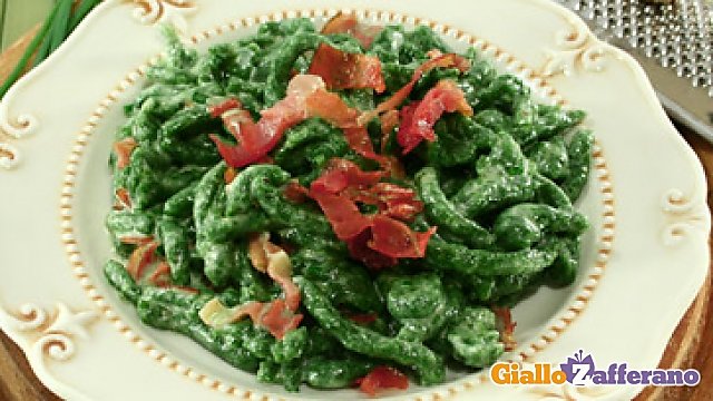 Spätzle di spinaci con speck e panna