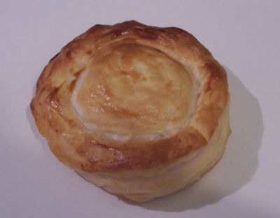 Spennellare il bordo col tuorlo d'uovo, coprire con altro foglio di sfoglia arrotolando bene i bordi. Spennellare ancora col tuorlo d' uovo, far riposare per 30 minuti in frigo. Mettere nel forno prescaldato a 250 gradi per 12/15 minuti.