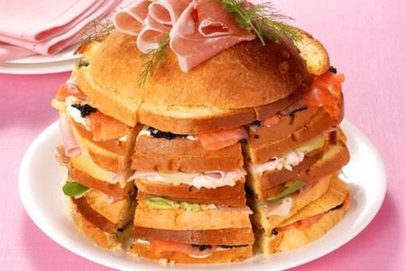 Impastare a macchina tutti gli ingredienti per 15 minuti oppure a mano per 30 minuti, poi sistemare l'impasto in uno stampo per panettone o in una pentola ben oleata alta 15 cm x 24 cm di diametro e far lievitare fino a che l'impasto raggiunge il bordo dello stampo. Infornare a 200°C per 15 minuti. Lasciar raffreddare il panettone per circa mezz'ora, poi tagliare a strati e farcire con salse, salumi o formaggi, ricordandosi di spalmare ogni fetta con un sottile strato di maionese, salse o formaggio cremoso affinché il panettone non si secchi.