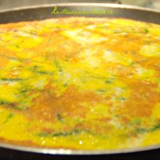 In seguito, sbattere le uova con un pizzico di sale, un goccio di latte ed un cucchiaio di grana grattugiato e unire il composto ai piselli.