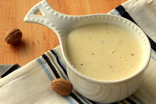 Avrete così ottenuto quello che i francesi chiamano roux. Togliete il pentolino dal fuoco e aggiungete al roux il latte caldo mescolando il tutto con un cucchiaio di legno. Rimettete quindi il pentolino sul fuoco, fate cuocere a fiamma bassa finchè la salsa comincerà a bollire e aggiungete un pizzico di sale e un pizzico di noce moscata. Coprite il pentolino con un coperchio e fate cuocere la besciamella, sempre a fuoco basso, per 15 minuti, il tempo necessario per far addensare la salsa, mescolando di tanto in tanto.