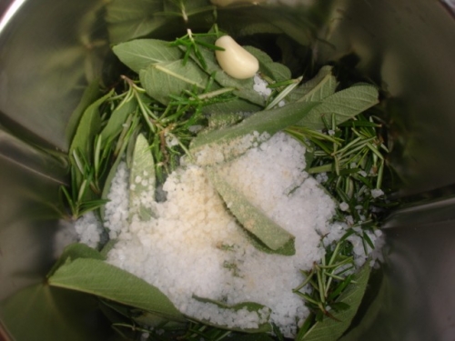 Mettere tutti gli ingredienti in un frullatore e tritare, aggiungere per ultimo il sale e far amalgamare il tutto.