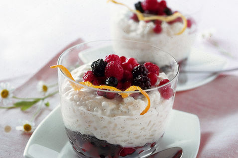 di 4 bicchierini, coprite con il riso e terminate con i frutti rimasti. Se vi piace, decorate con filini di scorza di