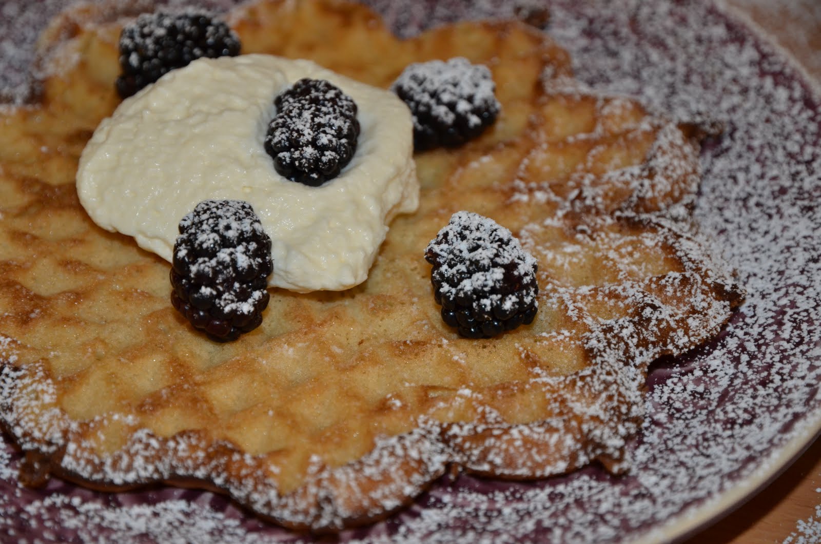 Imburrate la piastra per cialde, prelevate il composto un po’ alla volta e cuocetelo.