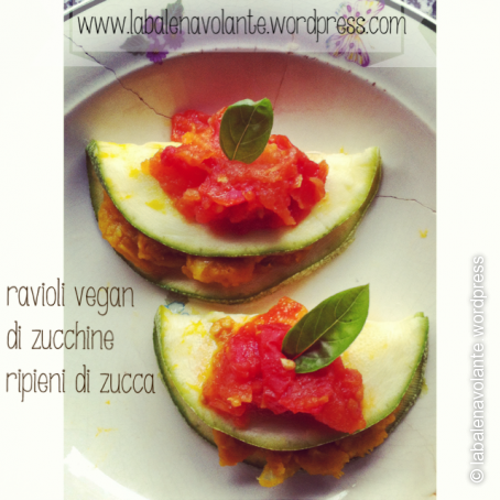 Ho farcito i ravioli di zucchine con il sugo di zucca e ricoperti con il sughetto di pomodoro. Il sapore dolce della zucca trova un suo equilibrio con il sapore più deciso del pomodoro, e la zucchina, con la sua presenza discreta, armonizza ulteriormente i sapori.