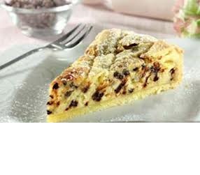 - 250 g di farina, 150 g di zucchero a velo, 150 g di burro, 3 tuorli d'uovo, 1 bustina di vanilina, buccia di un limone, 250 g di ricotta, 100 g di panna fresca, 80 g di cioccolato a scaglie, sale