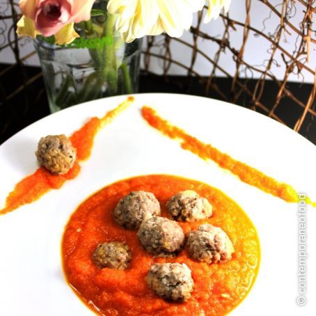 Vellutata di carote con polpettine di maiale e mandorle al profumo di menta