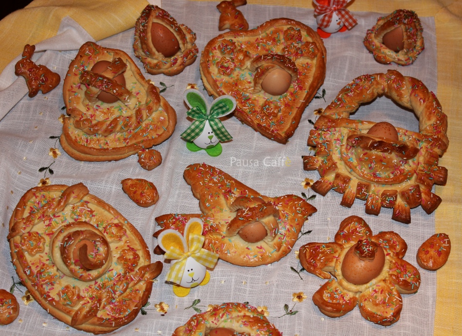 Mettere sulla spianatoia la farina e formare una fontana.Versarvi al centro tutti gli altri ingredienti lo zucchero, il lievito, la vanillina, le 4 uova. Impastare con le mani e ancora aggiungere lo strutto a temperatura ambiente, continuare ad impastare con le mani. Aggiungere un po’ di latte, quanto basta per ottenere un impasto liscio ed omogeneo. Quando la pasta sarà ben liscia allora l’impasto è pronto per preparare i biscotti. Far bollire le uova,per creare le decorazioni, finchè diventeranno sode, poi, lascirle rafreddare. Stendere la pasta su di un ripiano infarinato, creare le forme desiderate, un cuore, un cestino, un uccello, ecc, magari aiutandosi con un coltellino. Disporre sulla pasta le uova sode. In genere c’è chi preferisce fare un biscotto con un uovo sodo, chi, invece, fa un unico grande biscotto con più uova, magari con delle strisce di pasta che vi passano sopra, chi si lascia guidare dalla fantasia. Spennellare i biscotti con dell’uovo sbattuto insieme ad un goccio di latte. Decorare con le palline d’argento e/o con i diavolicchi multicolori altrimenti detti nel catanese ciriminnacchi . I biscotti pasquali con le uova, tipici appunto della Pasqua, vengono chiamati in modo diverso in base alla zona, possono chiamarsi anche cuddura o ciciliiu. Disporre l’aceddi cu l’ovu su una placca da forno foderata con un foglio di carta oleata, o meglio se spalmata con un po’ di burro ed infornare a 180° in forno preriscaldato per 15 minuti circa. Guardare di tanto in tanto senza farli bruciare ma ben dorare. Se occorresse più tempo lasciarli oltre i 15 minuti indicati. Ogni forno è diverso da un altro quindi bisogna fidarsi più della propria esperienza, il tempo è indicativo.