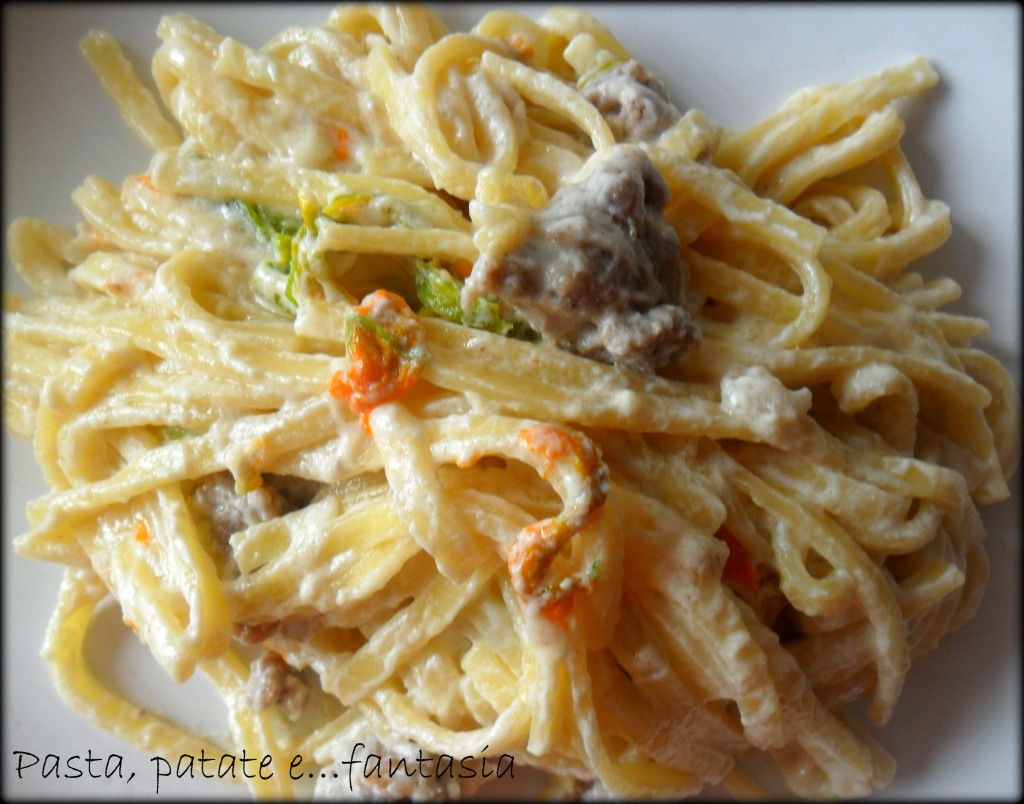 Scialatielli con salsicce, ricotta e fiori di zucca