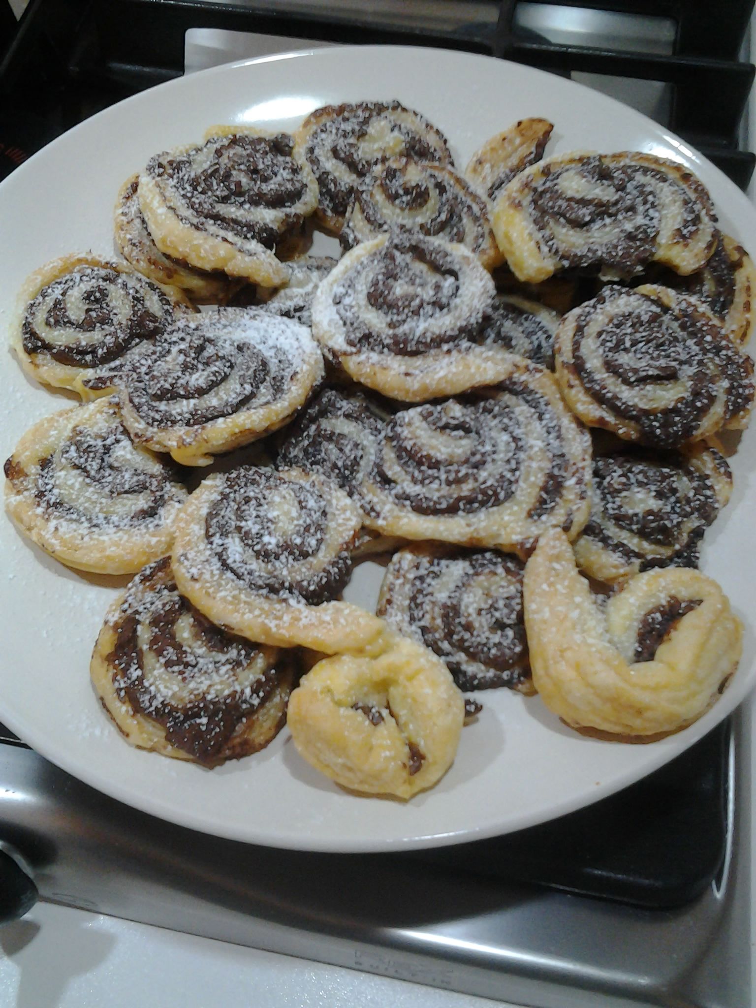 Spalmare sulla pasta sfoglia uno strato di Nutella a piacere. Arrotolare aiutandosi con la carta da forno e tagliare delle fettine spesse 1 cm. Adagiare le rondelle su una teglia rivestita di carta da forno e cuocere in forno per 25 minuti. Spolverizzare con lo zucchero a velo e servire.