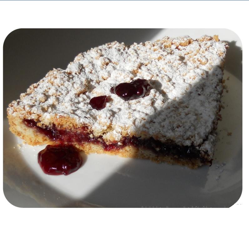 Lavorare velocemente tutti gli ingredienti tra di loro con le punte delle dita fino a creare tante piccole briciole d'impasto. Distribuire 3/4 di briciole sul fondo della teglia per crostate imburrata o coperta da carta forno, stendere uno strato spesso di marmellata e pian piano aggiungere le altre briciole di pasta lungo il bordo in modo da sollevarlo e anche sopra la marmellata. Cuocere in forno caldo a 180°C per 30 minuti.