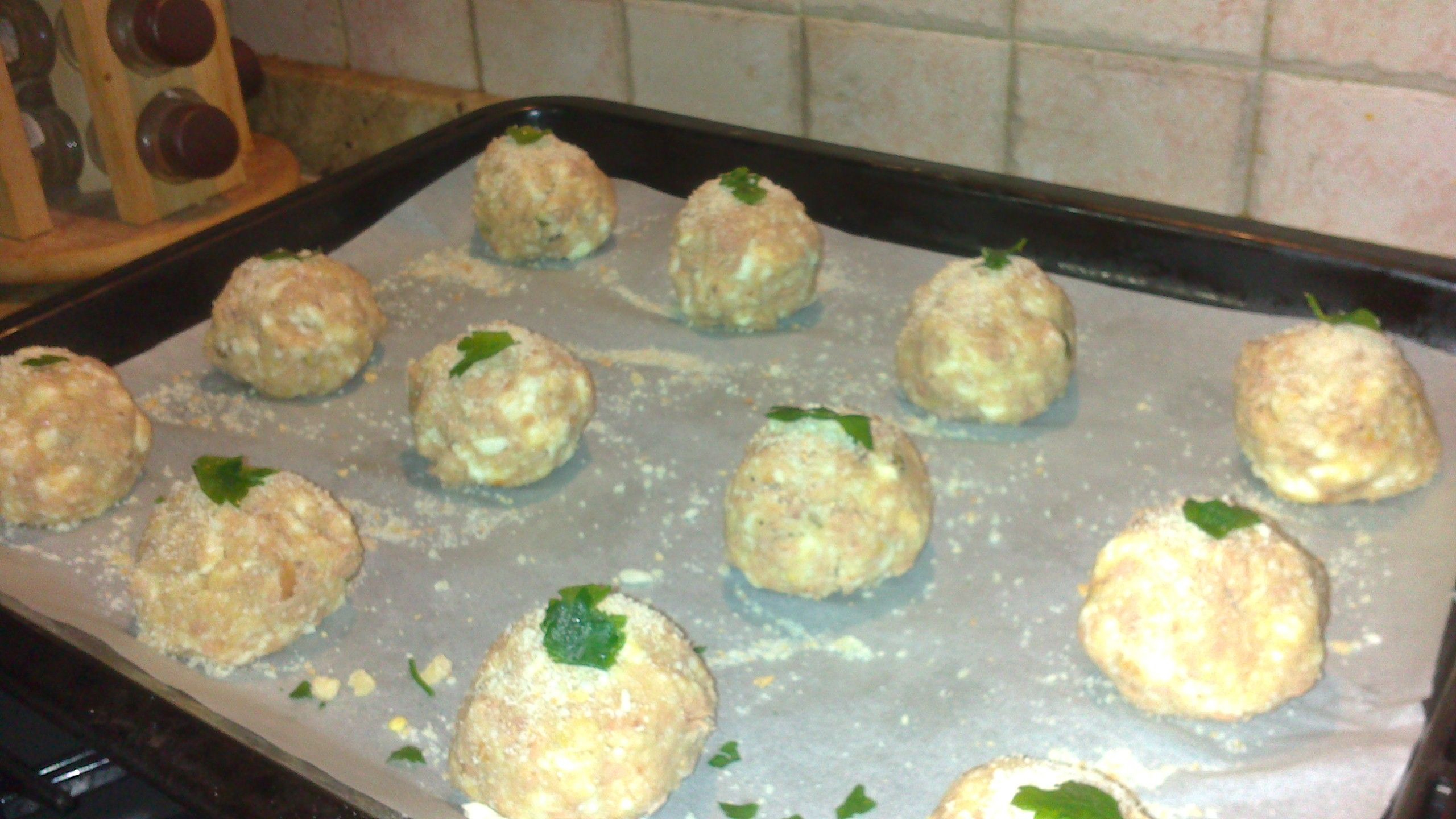 Formare delle polpettine e disporle su di una teglia con carta forno.