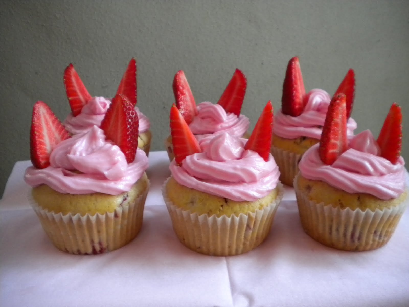 Quando i cupcakes sono freddi con una siringa decorare la sommità con il frosting e finire con una fetta di fragola o confetti come decorazione.