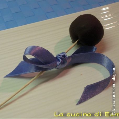 Spezzettate il cioccolato fondente, mettetelo in una pentola di acciaio e fatelo sciogliere a bagnomaria su fuoco moderato. Una volta fluido, spegnete il fuoco e aggiungete lo zucchero a velo setacciato, lavorate energicamente con una spatola. Infilate uno stecchino nella prima pallina e immergetela nel cioccolato, ruotandola per livellarlo bene su tutta la superficie. Ora appoggiate il vostro cake pops in un bicchiere mentre preparate nello stesso modo tutti gli altri fino a finire il composto. Una volta ricoperti tutti i vostri cake pops con il cioccolato fondente lasciateli solidificare in frigorifero fino al momento di servirli.