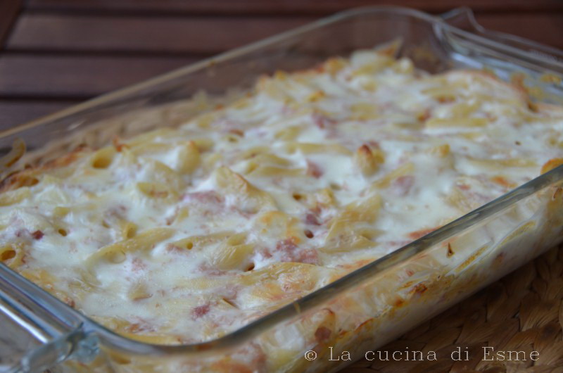 Iniziate preparando la besciamella:mettete in un pentolino di acciaio il burro, fatelo sciogliere a fuoco bassissimo, poi toglietelo momentaneamente dal fuoco il tempo di aggiungere la farina setacciata, mescolate bene e poi rimettete sul fuoco. Mescolando continuamente aggiungete il latte tiepido a filo. Seguitate a mescolare con un cucchiaio di legno e fate cuocere a fiamma bassa finchè la salsa prenderà la consistenza desiderata. Salate e aggiungete un grattata di noce moscata. Se si dovessero formare dei grumi, ponete il pentolino lontano dal fuoco e date una frullata con il mixer ad immersione. Tagliate a pezzetti piccolissimi la mozzarella e il prosciutto cotto. Cuocete la pasta al dente e nel frattempo prendete una pirofila da forno e mettete sul fondo un paio di cucchiai di besciamella. Quando la pasta sarà pronta scolatela bene, versatela in una ciotola insieme alla besciamella, mescolate, unite il parmigiano, il prosciutto e la mozzarella mescolate ancora e poi versate il tutto nella pirofila, livellate lo sformato e versateci sopra due o tre cucchiai di besciamella. Infornate a forno caldo in modalità areato a 180° per 35/40 minuti.