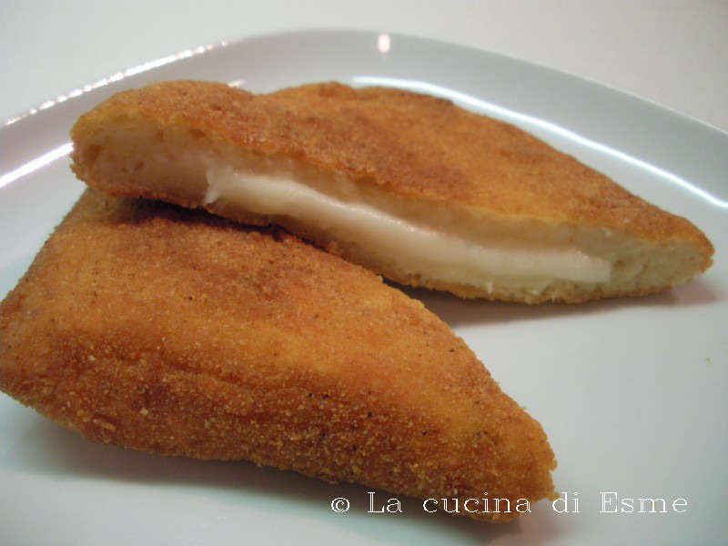 Lasciate la mozzarella fuori dalla sua acqua per un pò in modo che risulti un pò asciutta e tagliatela a fette. Rompete le uova, salatele e sbattete usando una forchetta. Togliete al pane in cassetta il bordo più scuro. Mettete una fetta di mozzarella al centro di una fetta di pane lasciando intorno dei bordi liberi di circa un centimetro e coprite con un'altra fetta di pane. Fate aderire i bordi schiacciandoli con le dita. Intingete il sandwich nel latte, passatelo nella farina, immergetelo nelle uova sbattute e ricopritelo con il pangrattato, pressando leggermente con le mani per farlo aderire alle fette di pane. Fate aderire bene i bordi, premendoli con le dita, per evitare che la mozzarella fuoriesca in fase di cottura. Scaldate bene abbondante olio in una padella e frigette il sandwich fino a quando diventerà dorato e leggermente gonfio, giramdolo in cottura molto delicatamente. Mettete ad asiugare su carta da cucina per togliere l'olio in eccesso. Servite caldo, anzi caldissimo.