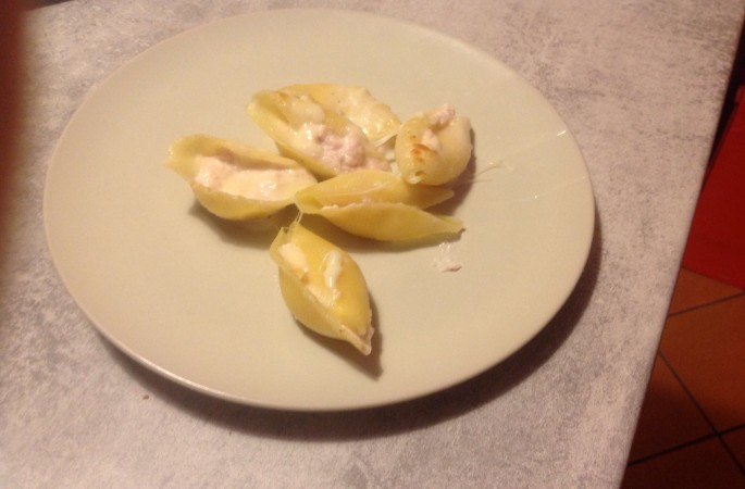 Conchiglioni ripieni di mousse di prosciutto e ricotta - Tappa 1
