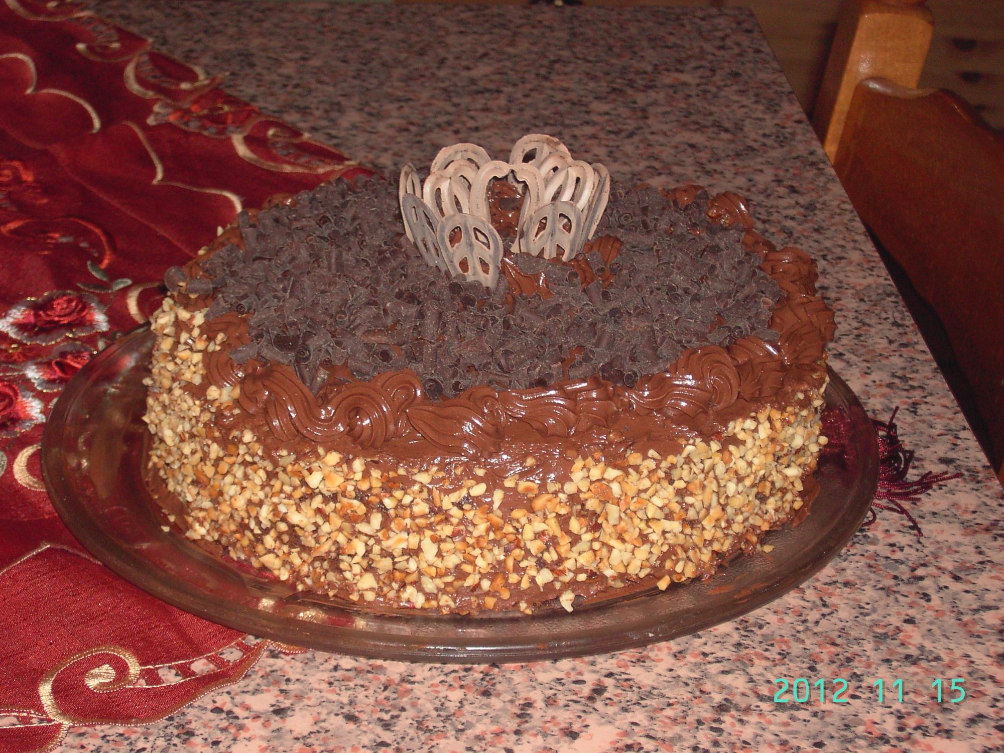 Farcite infine il pan di spagna con la crema, e ricopritelo completamente esternamente, aiutandovi con una sacca da pasticcere.Guarnite infine il bordo esterno con noccioline e/o mandorle tritate.