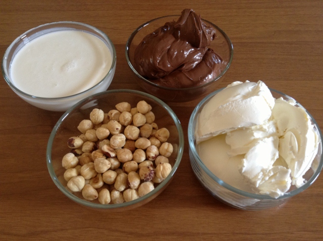 Unire anche la nutella e continuare a lavorare fino a mescolare perfettamente i due ingredienti.Versare il composto ottenuto sopra la base di biscotto e livellare bene.Infine aggiungere le nocciole tritate e mettere in frigo.