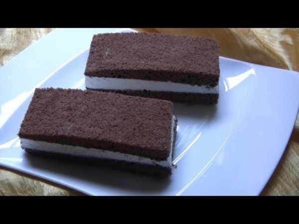 In una ciotola capiente versare la panna liquida, e montarla con le fruste . Aggiungere il miele, e il latte concentrato. Frullare tutto. Staccare il pan di spagna dalla carta forno. Con un coltello tagliare i bordi regolari. Dividere in 2 parti uguali. Su una metà distribuire la crema con una spatola, in modo abbondante, perchè dovrà essere spessa. Sovrapporre l'altra metà e farla aderire. Mettere in frigo per 40 min e poi potrà essere servita.