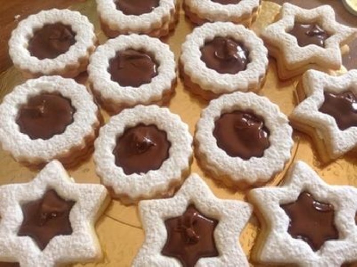 Togliere il burro dal frigo un ora prima dalla lavorazione. Tagliarlo a pezzetti e lasciarlo ammorbidire a temperatura ambiente. Mettere la farina su un piano e al centro il burro con gli altri ingredienti tranne la nutella e lo zucchero a velo. Lavorare bene. Stendere una sfoglia alta un cm, e con degli stampini fare dei cuori (due per ogni biscotto). Su uno dei biscotti incidere un cuoricino più piccolo, metterli su una teglia con della carta forno. Infornare a 180° per 15-20 min. I biscotti devono soltanto colorirsi leggermente. Infine mettere la nutella e sovrapporre l'altra sagoma. Spolverare con lo zucchero a velo.