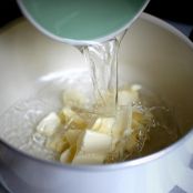 Portare ad ebollizione l'acqua con il burro, lo zucchero e un pizzico di sale.