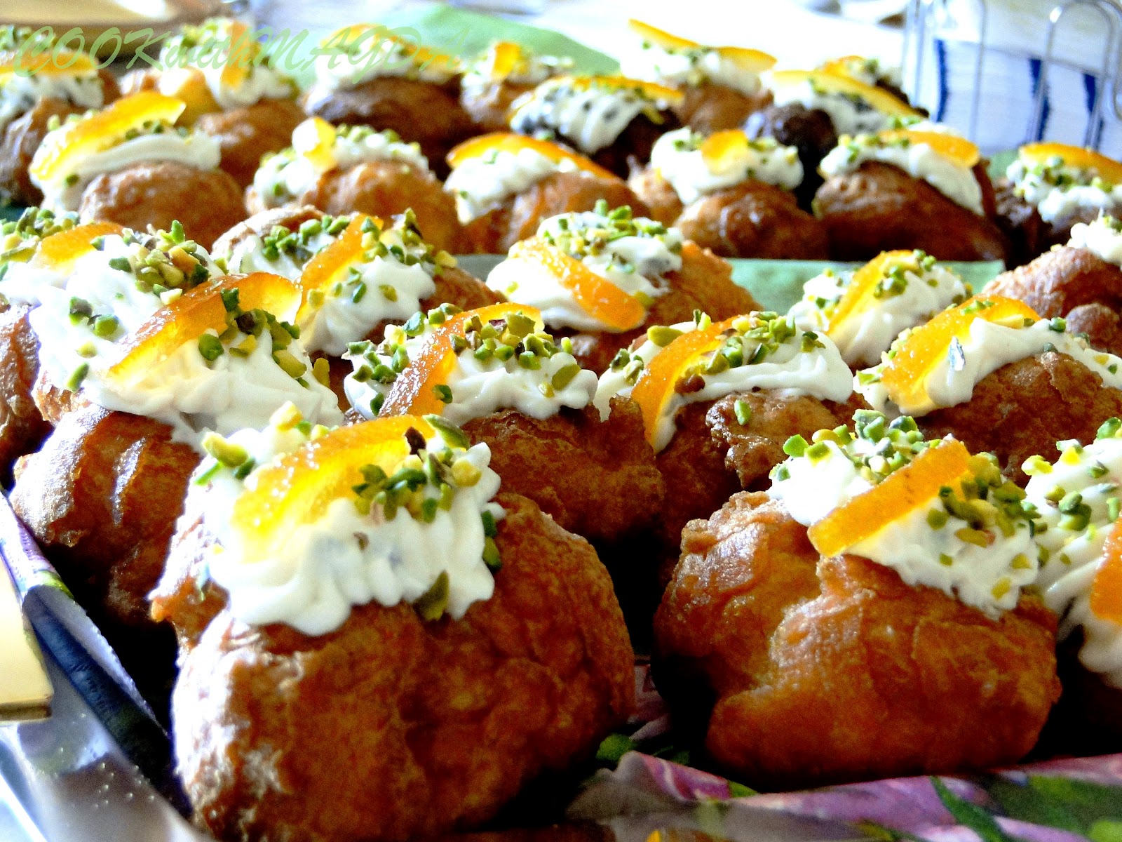 Riempirli di ricotta e decorarli con dello zucchero a velo e della frutta candita.