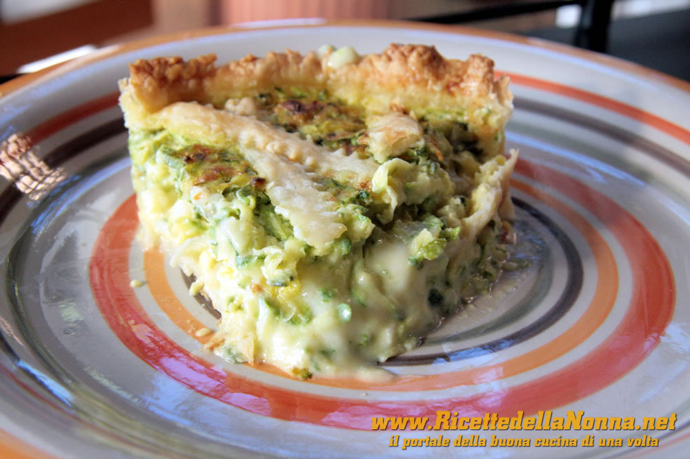 Mescolate uova, panna, grana, groviera, zucchine, salate e pepate.