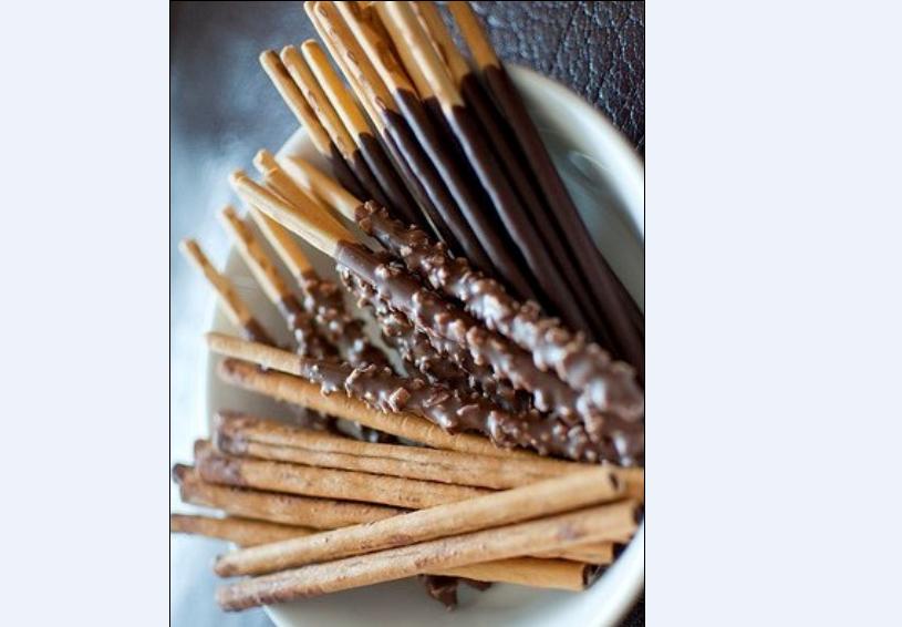 Lasciar raffreddare i bastoncini e poi ricoprirli di cioccolato fuso semplice o ottimizzato con granella di nocciole, codette o altro, quindi porre a raffreddare su una gratella e poi in frigo per far addensare bene il cioccolato.