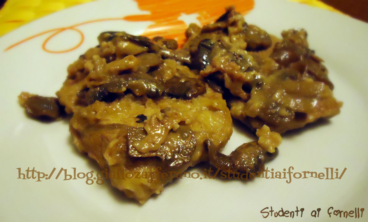 Servite immediatamente disponendo due fettine di carne a testa accompagnate dai funghi che suddividerete per ogni commensale.