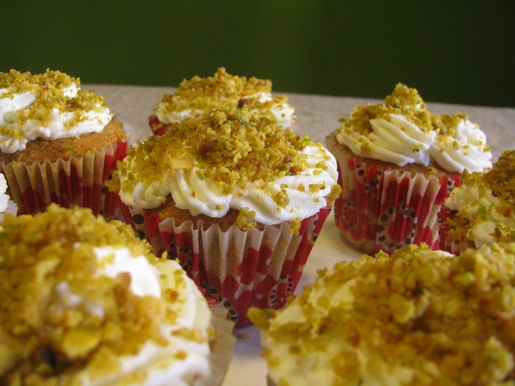 In una terrina lavorare il burro morbido con lo zucchero. Unire la scorza del limone grattugiata e 8 tuorli incorporandoli uno alla volta. Aggiungere, sempre mescolando, le farine setacciate. A parte montare a neve ferma 4 albumi con un pizzico di sale e incorporare delicatamente al composto. Imburrare gli stampini o utilizzare i pirottini e riempirli per 3/4, quindi cuocere in forno preriscaldato a 170°C per 15 minuti ca. fino a che le tortine non saranno dorate. Lasciar intiepidire, quindi toglierle dagli stampini, tagliarle a metà e farcire con panna montata e granella di pistacchi. Posizionare sul piatto da portata, sormontare le tortine con ciuffi di panna montata e spolverizzare di zucchero a velo.
