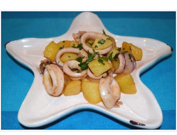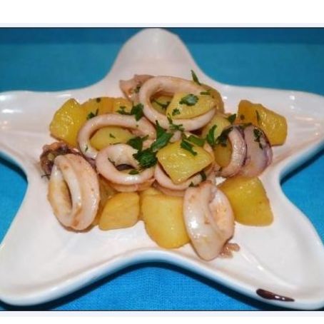 A fine cottura, aggiustate di sale e aggiungete del prezzemolo tritato fresco e servite i calamari con le patate;