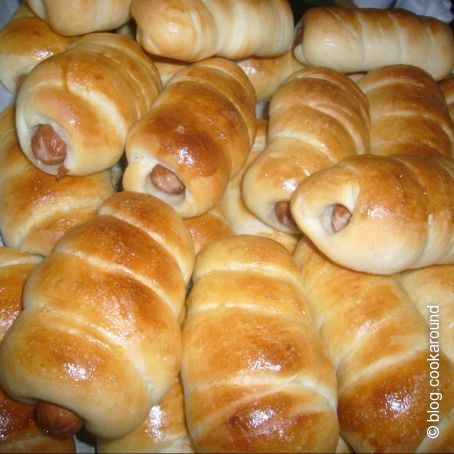 Adagiare i rotolini sulla placca del forno, distanziati l'uno dall'altro. Spennellarli con il tuorlo d'uovo e fare cuocere in forno a 180° per 30 minuti circa.