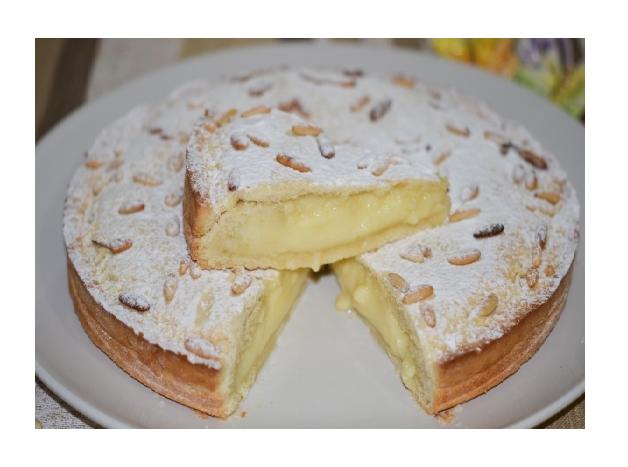 Infornate la torta della nonna in forno già caldo e cuocete a 180° per circa 40 minuti.