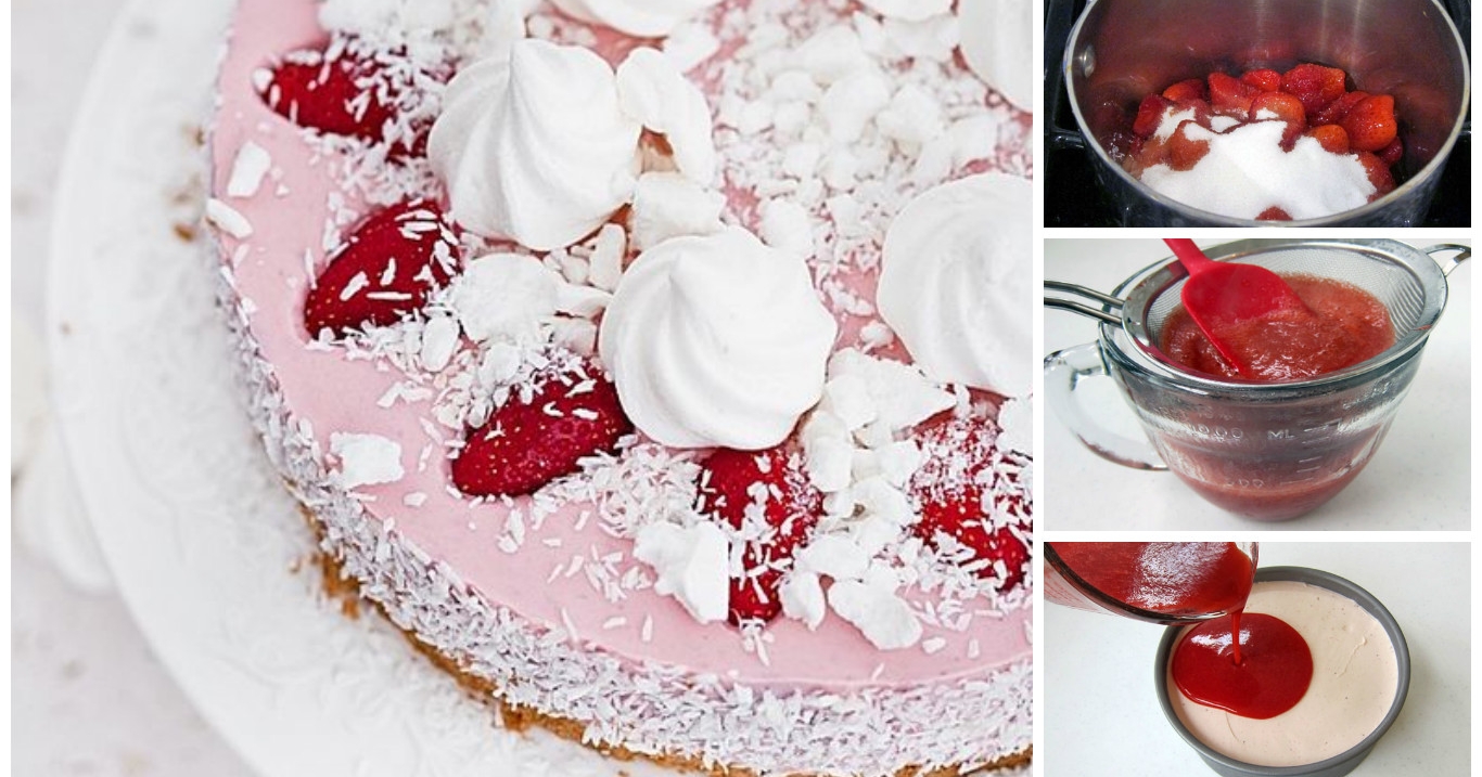 Mettete la Torta fredda al cocco e fragole in frigo e rassodare per 2 ore.