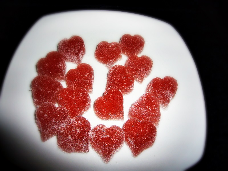 Mettere a bagno la colla di pesce. In un pentolino mettere il succo di limone, lo zucchero e il succo di frutta. Portare a bollore e togliere dal fuoco. Aggiungere la colla di pesce strizzata e lasciare intiepidire. Mettere negli stampi di silicone e lasciare in frigo una notte. Sformare le gelatine e rotolarle nello zucchero semolato.