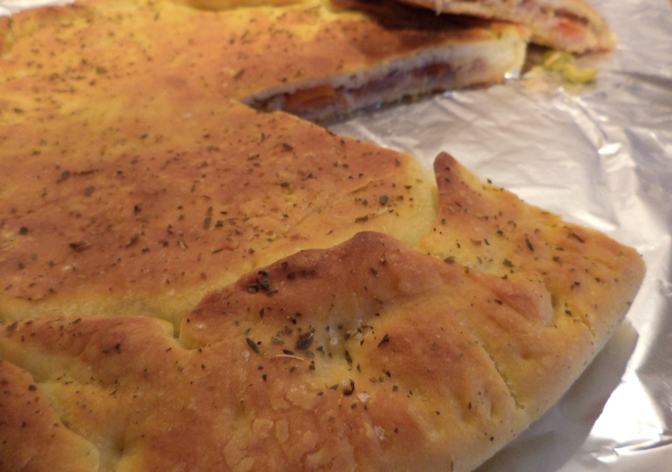 Preparazione: stendere con un matterello l’impasto e ricavarne 4 sfoglie sottili (con queste dosi si preparano 2 teglie da 26 cm). Ungere di olio la teglia e adagiarvi il disco di pasta facendolo sbordare per facilitare poi la chiusura del calzone , distribuire il ripieno di pasta e cipolle e completare con i filetti di acciughe e le olive denocciolate , richiudere con il secondo cerchio e con la forchetta pressare lungo i bordi e bucherellare la superficie dopo averla cosparsa di olio . Infornare a 200 gradi circa per almeno una ventina di minuti fino a che la superficie sarà dorata. Servire caldo o freddo .