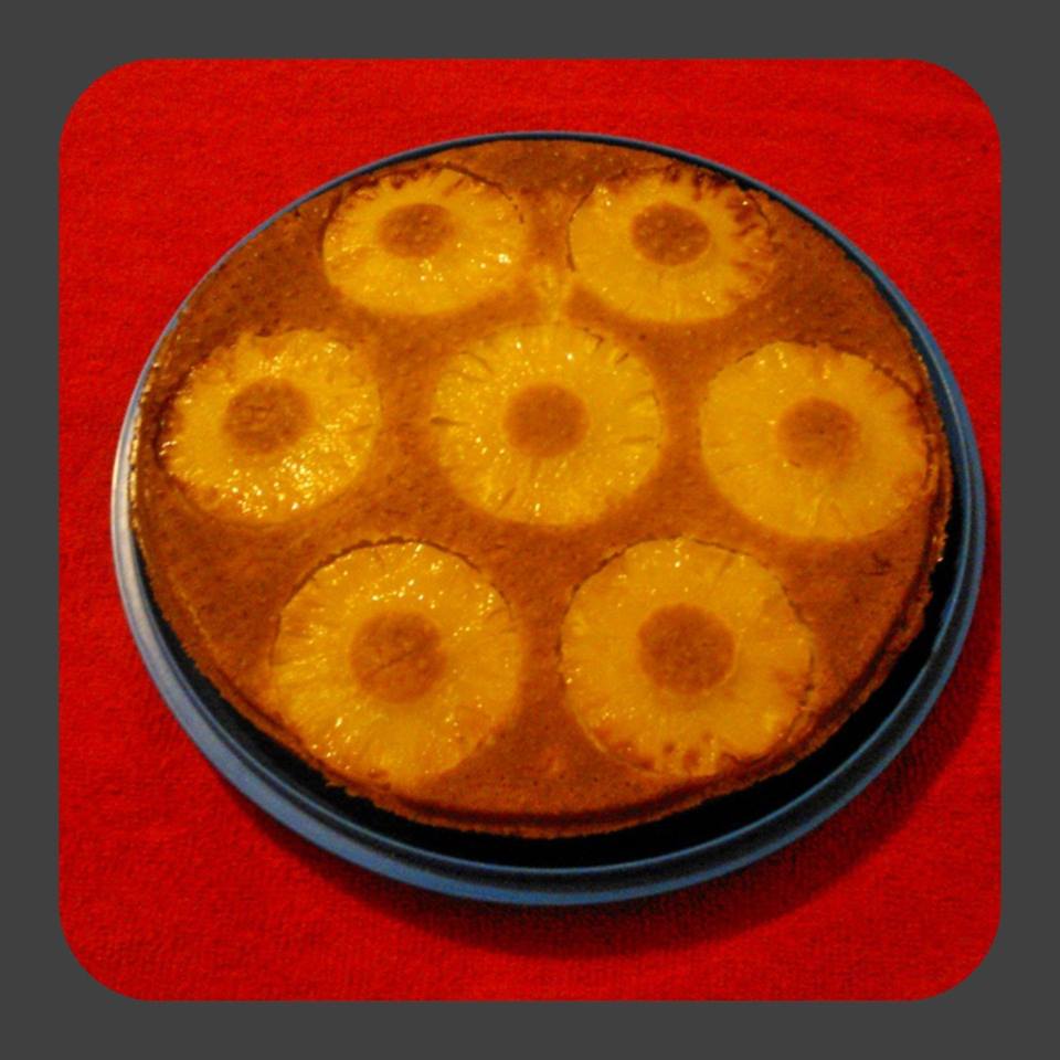 Montare il burro con lo zucchero e aggiungere un uovo alla volta. Successivamente, alternare la miscela di farina, lievito e vanillina setacciati al succo di ananas, amalgamando bene.