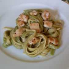 Portate a bollore l'acqua per la pasta e lessate le tagliatelle. Prelevate un mezzo bicchiere di acqua di cottura della pasta e scioglietevi lo zafferano in polvere.