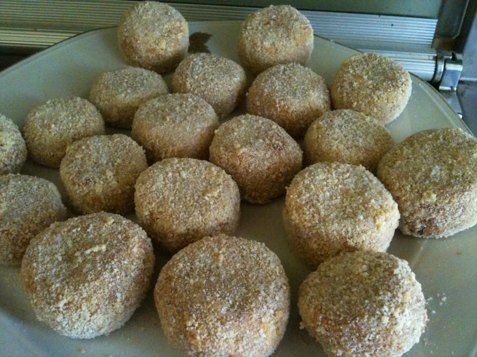 Intanto prepariamo un piatto dove metteremo il pangrattato e una fondina in cui mettiamo l'uovo leggermente sbattuto.Ora frulliamo i fagioli nel mixer insieme alla crema che avranno fatto cuocendosi, e mettiamo la purea ottenuta in una ciotola. Aggiungiamo i dadini di prosciutto, il grana, il rosmarino e l'erba cipollina e amalgamiamo. Siccome dobbiamo fare delle mini polpettine può essere necessario aggiungere del pane grattato all'impasto, o ne ho aggiunto circa 4/5 cucchiai, ho fatto ad occhio e appena sono riuscita ad impastare con le mani ho formato le polpettine.Poi le passiamo nell'uovo e nel pane grattato, e le friggiamo nell'olio di semi...