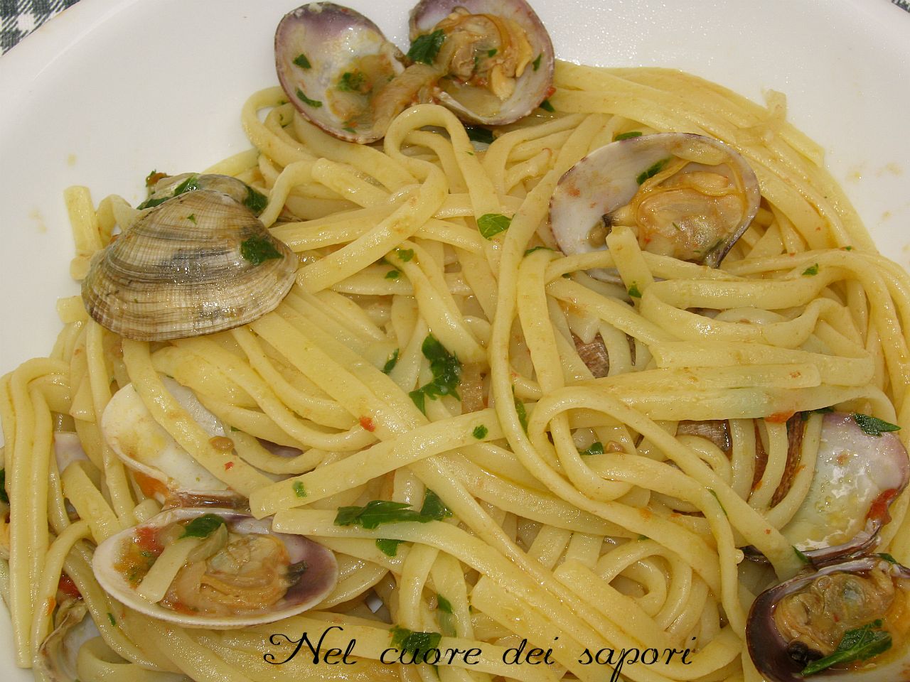 Aggiungere le vongole e il tonno e lasciare insaporire per 8 minuti circa