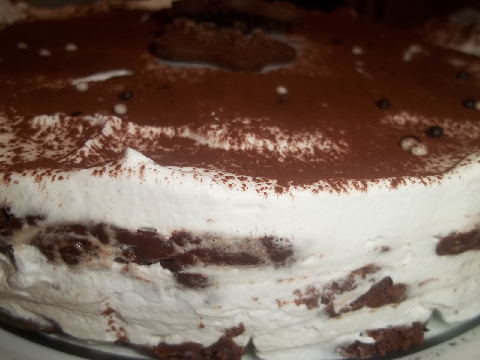 L'ultimo strato deve essere di panna e sopra ad esso metteremo il cacao setacciato e qualche scaglietta di cioccolato.