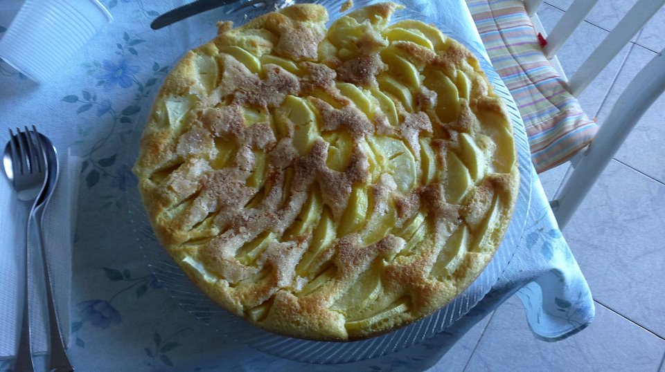 Quando la crema sarà pronta, stendere la frolla, farcirla con la crema e guarnire con le mele a fettine e una spolverata di zucchero