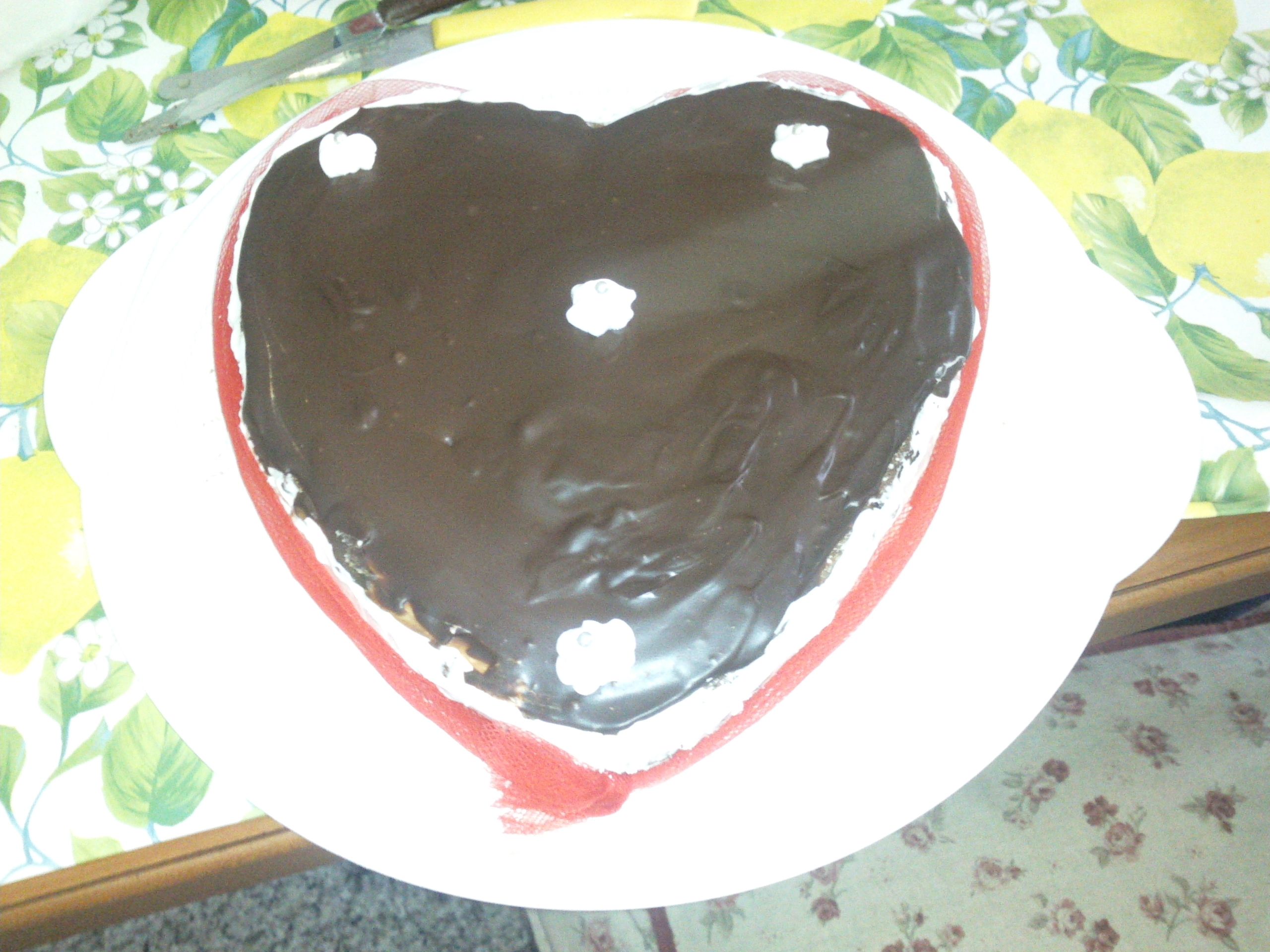 Preparare la glassa con 100 g di cioccolato fondente e 40 g di burro oppure di panna.E cospargerla sulla torta.