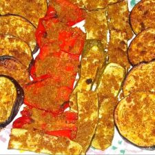 Lavare e tagliare le verdure a pezzi piccoli, mescolare in una ciotola con olio e qualche cucchiaio di pangrattato.
